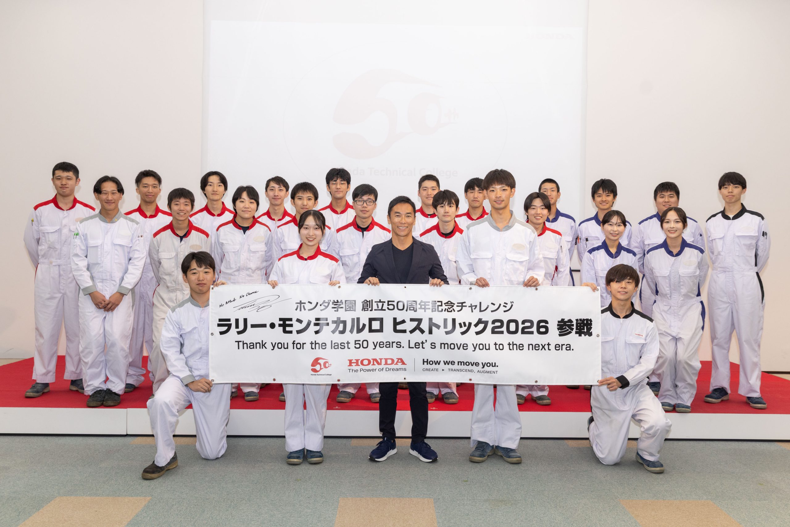 ホンダ学園は創立50周年にあたり、世の中の皆様にこれまでの50年を感謝し、未来へ意思表示をすべく、50年の集大成としてモンテカルロ ヒストリックに