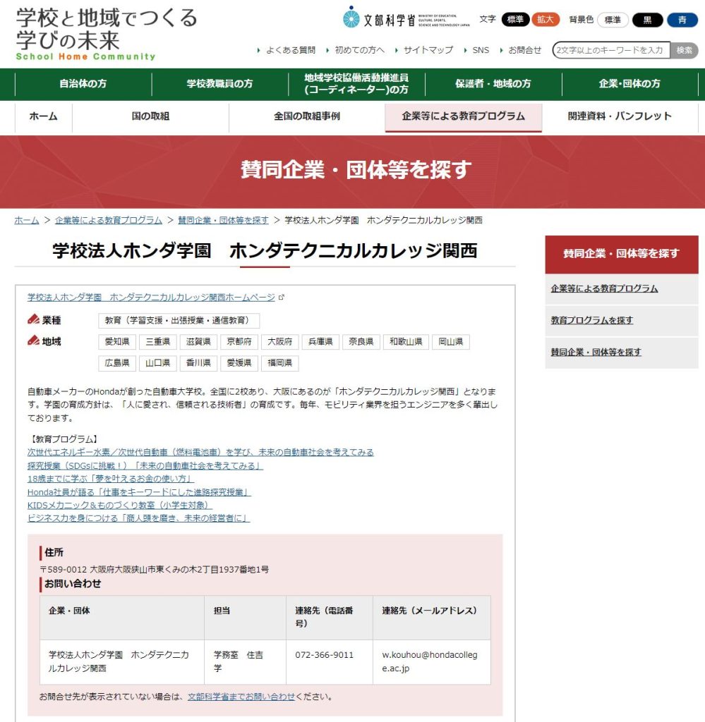学校法人ホンダ学園 ホンダテクニカルカレッジ関西:学校と地域でつくる学びの未来 (mext.go.jp)