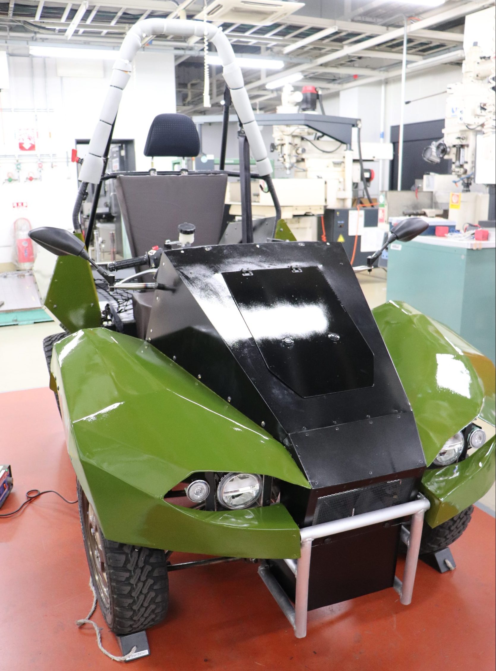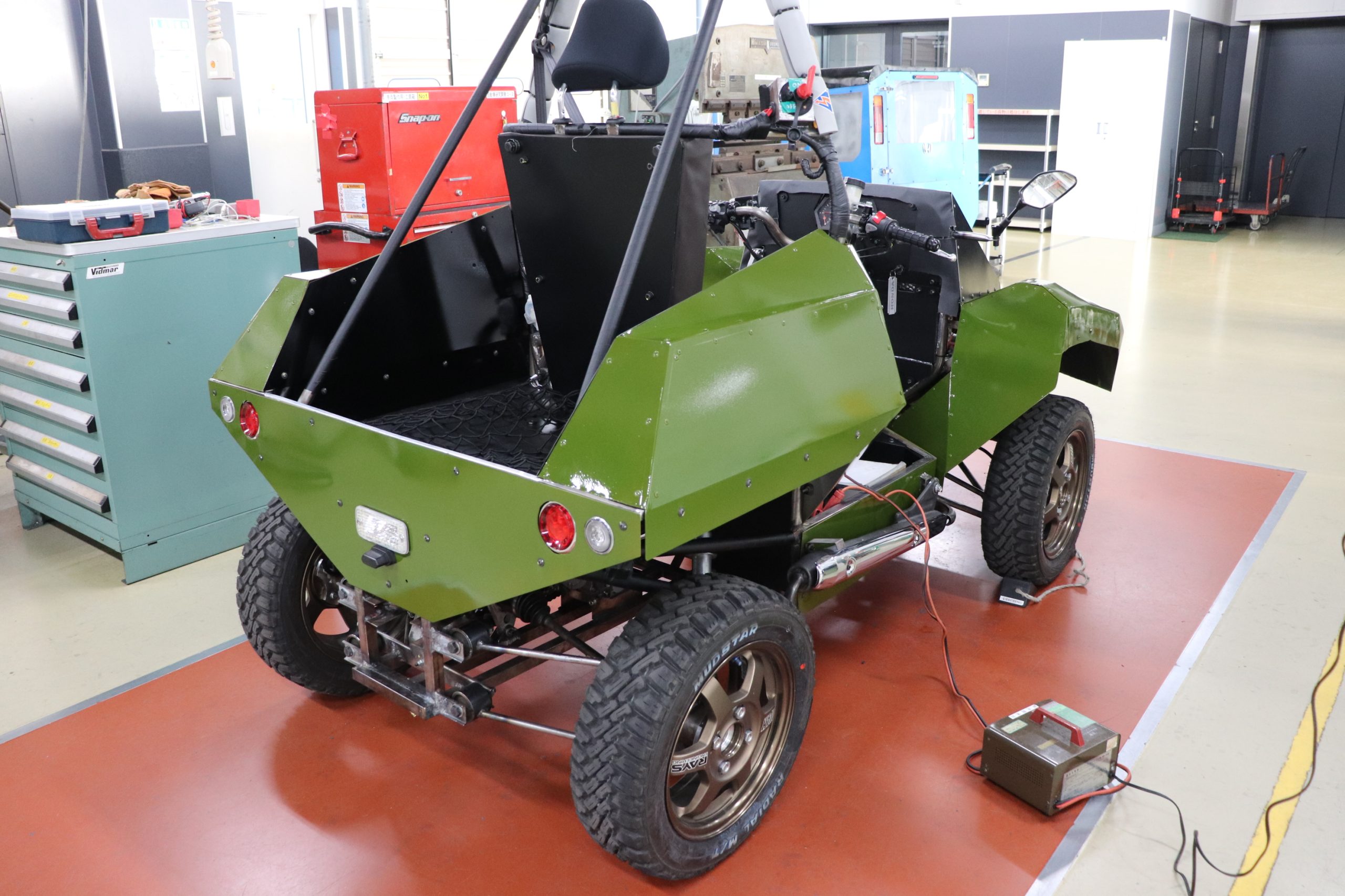 ■学園生(自動車研究開発コース4年生)が制作した車両も見てもらい、校庭で実走!