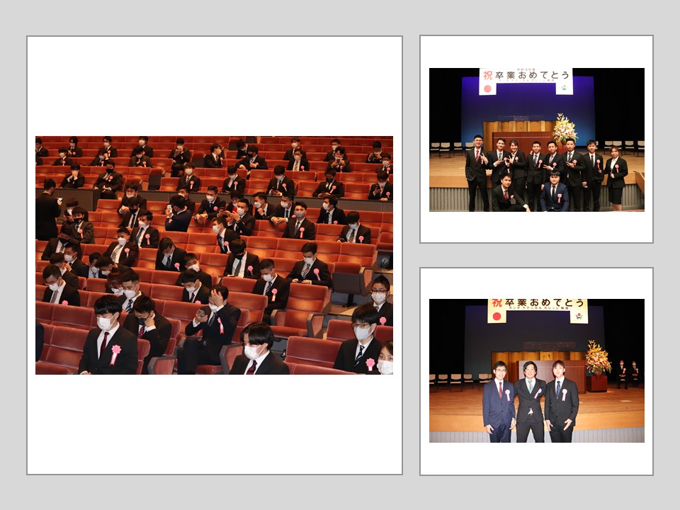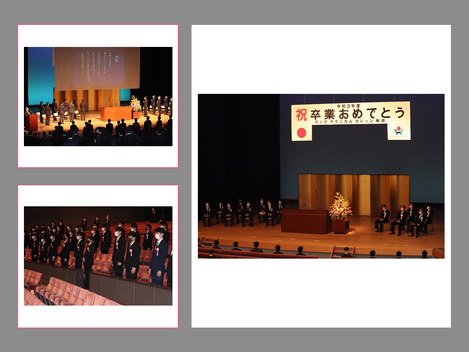 3月9日(水)に令和3年度卒業式を大阪狭山市のSAYAKAホールにて執り行いました。コロナ禍での開催となり、学生と教職員のみでの実施となりました。ご参列できなかった保護者様には、YouTubeでLIVE配信を行い、多くの方にご視聴いただきました。今回の卒業生は152名。4月からは社会人としてそれぞれの道を進んでいきます。卒業生皆様のご活躍をお祈りしてます。