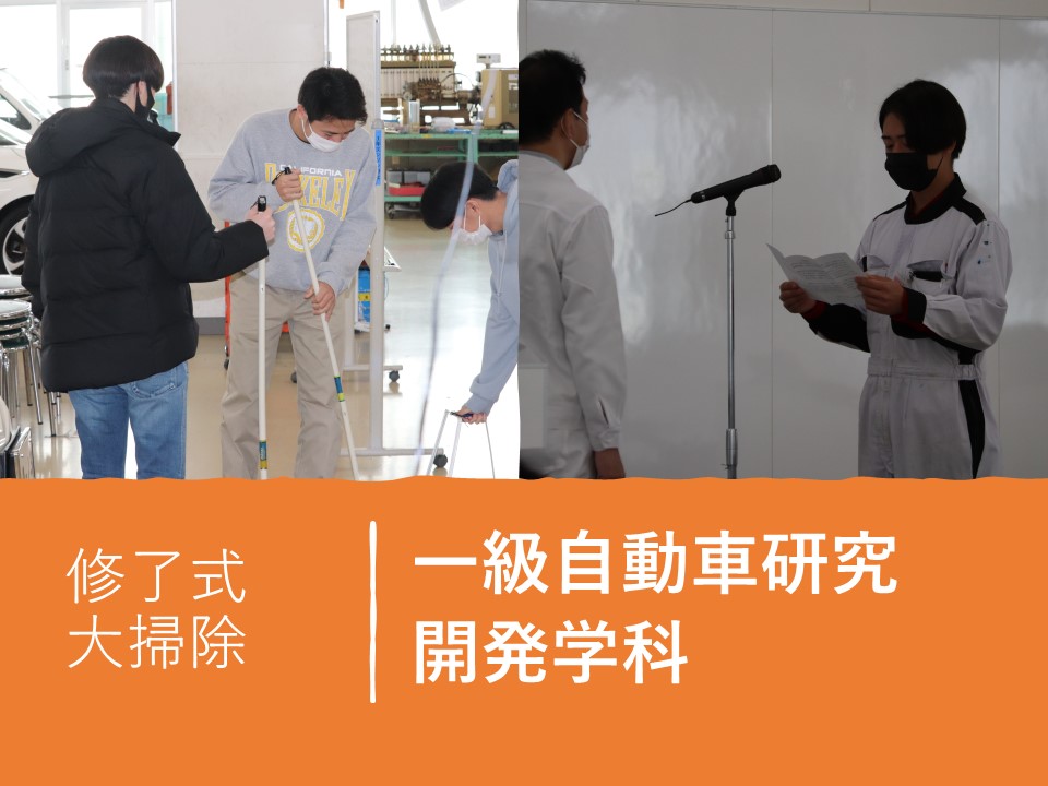 3月11日(金)に2021年度の終業式を講堂とONLINEで実施しました。終業式は、校長先生より一年の振り返り、春休みの過ごし方等のお話をさせて頂き、新任・異動する先生からご挨拶をさせて頂きました。その後、一級自動車研究開発学科2年生の修了式を実施し、在校生代表の三宅さんより、「自動車整備技能登録試験への全員合格に向けて、試験までの残りの日を大切にし、これまで応援してくださった人に結果で恩返しをしよう!」と決意表明がありました。
