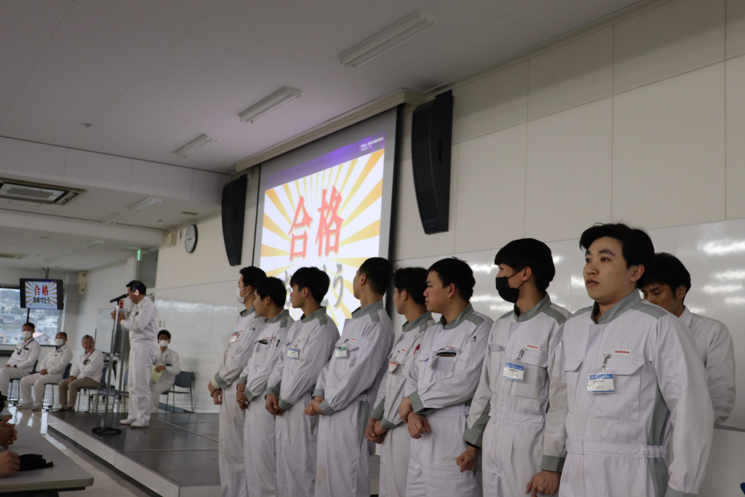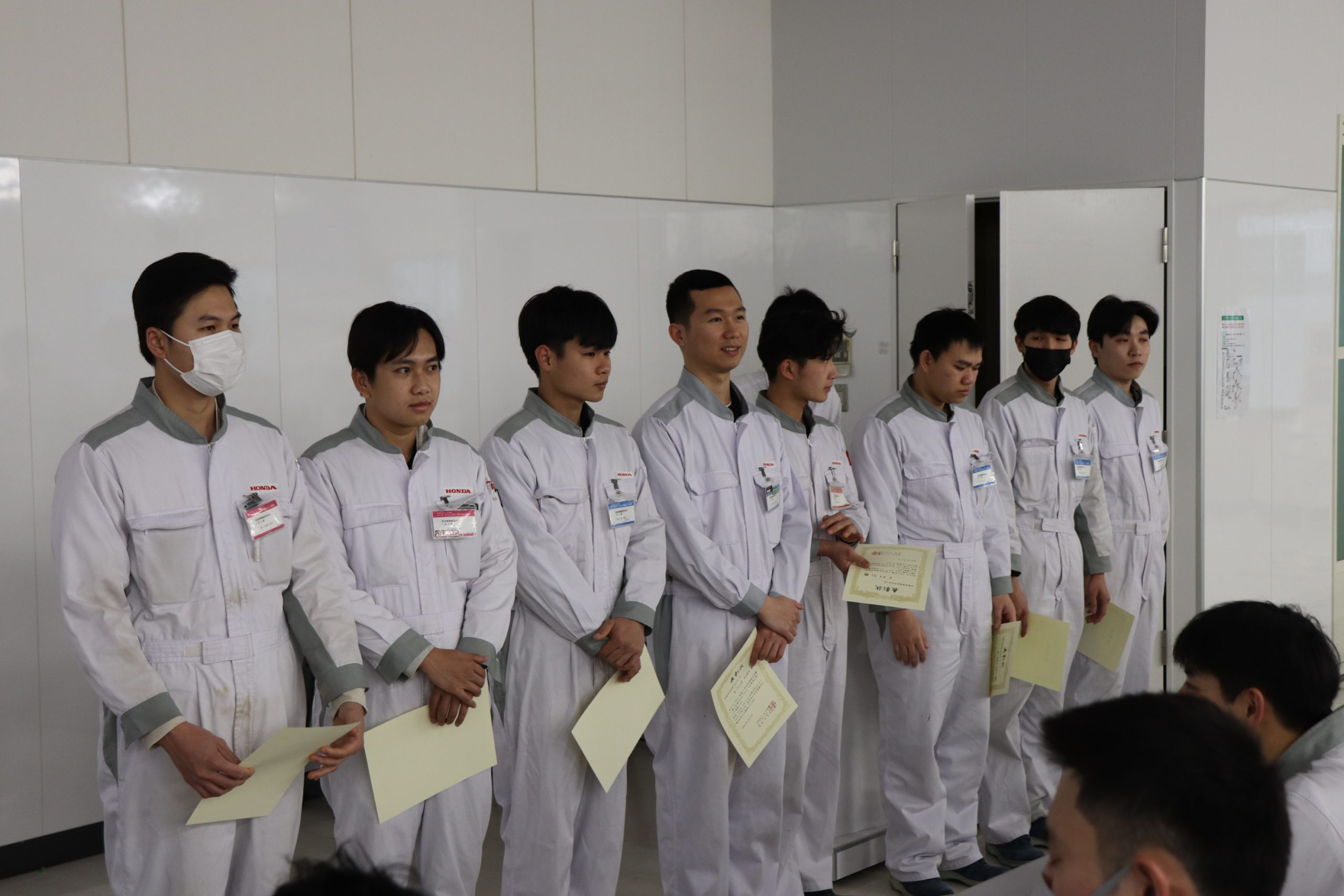 【表彰!】JLPT(日本語能力試験)資格試験合格者 2024.02.08 2月5日(月)に自動車整備留学生科で全体朝礼を実施し、2023年12月に実施したJLPT(日本語能力試験)にチャレンジし、合格した学園生の表彰を行いました。留学生は、ホンダ学園で自動車の知識・技術を身に付けることはもちろんですが、日本で生活し、働くうえで必要となる日本語のスキルも同時に伸ばさなくてはいけません。留学生は、アルバイト先でも、学園卒業後に働く場所となる企業様からも、更なる日本語能力の向上を期待されています。限られた時間の中でしっかり勉強に取り組み、合格という成果を出した留学生の皆さん、本当におめでとうございます。 成功し続けるまで挑戦!