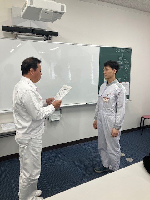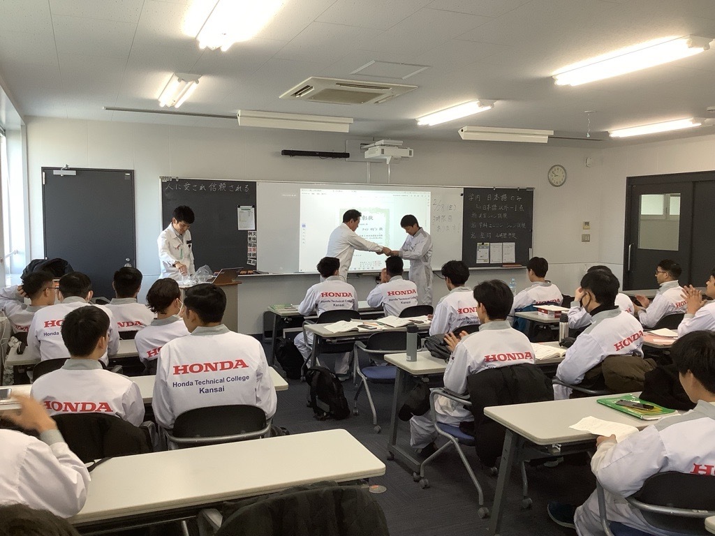 2月10日・12・13日の朝のホームルームで、2024年12月の受験したJLPT(日本語能力試験)で、合格した自動車整備留学生科1・2・3年生の表彰を行いました。留学生は、ホンダ学園で自動車の知識・技術を身に付けることはもちろんですが、日本で生活し、働くうえで必要となる日本語のスキルも同時に伸ばしています!