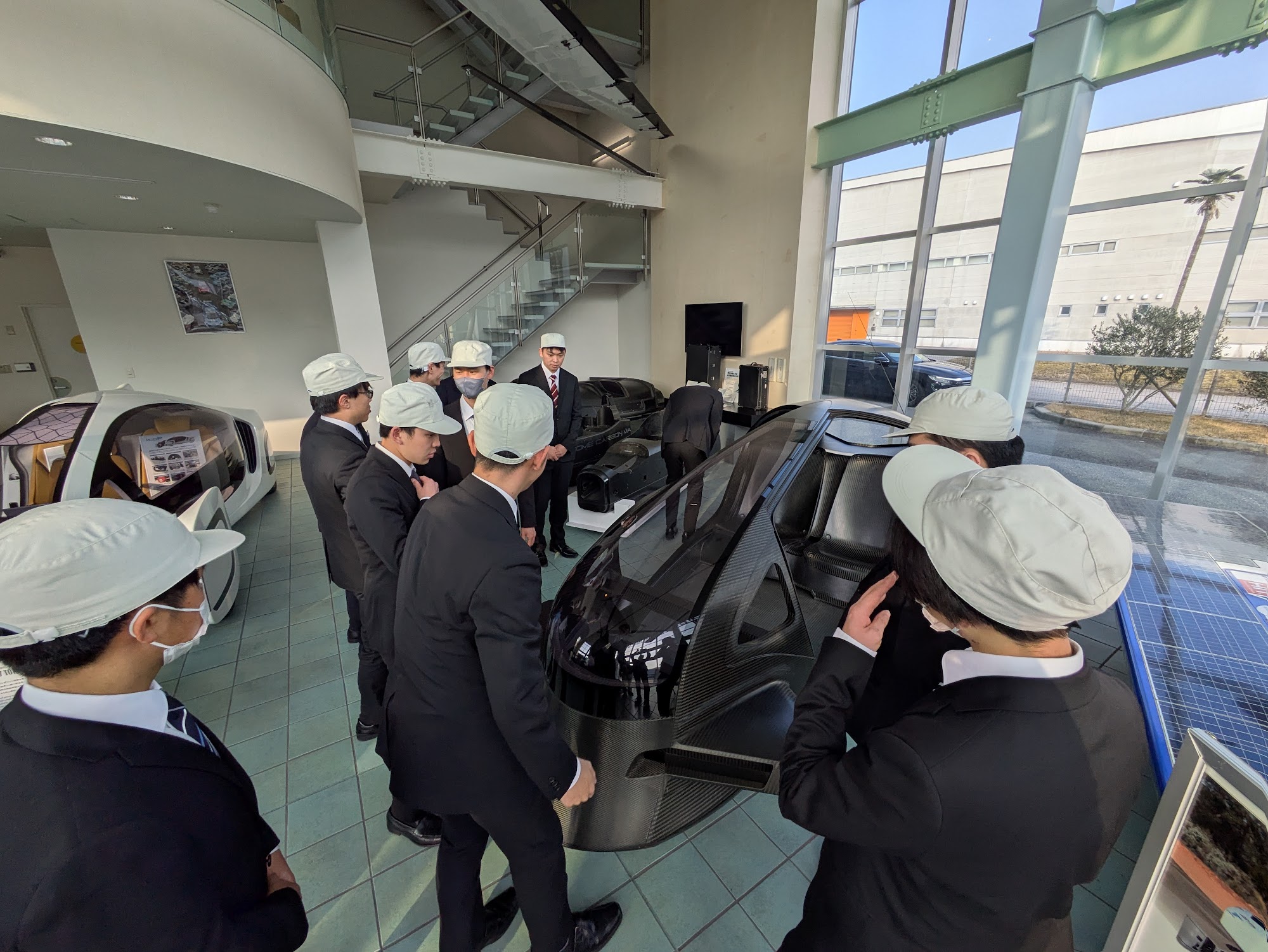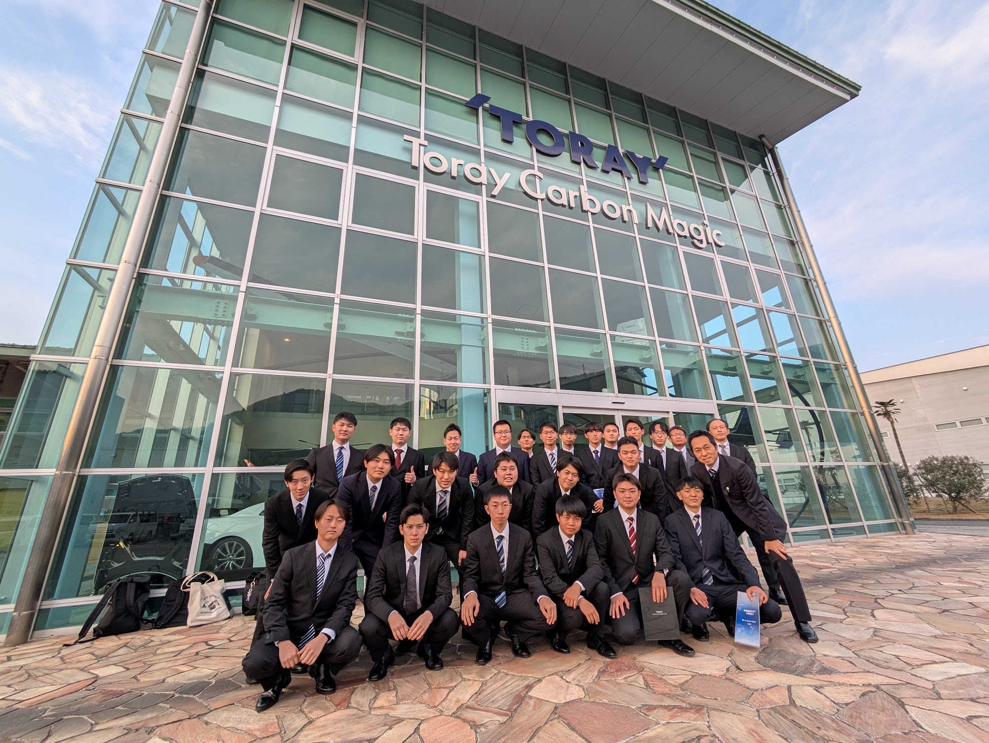 1月23日(木)に一級自動車研究開発学科 自動車研究開発コース3年生が、滋賀県の企業2社の事業所・工場見学に行ってきました。1社目は自動車の”走る・曲がる・止まる”の根幹を担う重要保安部品などの製品を提供している三桜工業株式会社の滋賀事業所へ、2社目は米原にある複合素材製品メーカーの東レ・カーボンマジック株式会社様にお伺いし、会社説明や工場見学をさせていただきました。