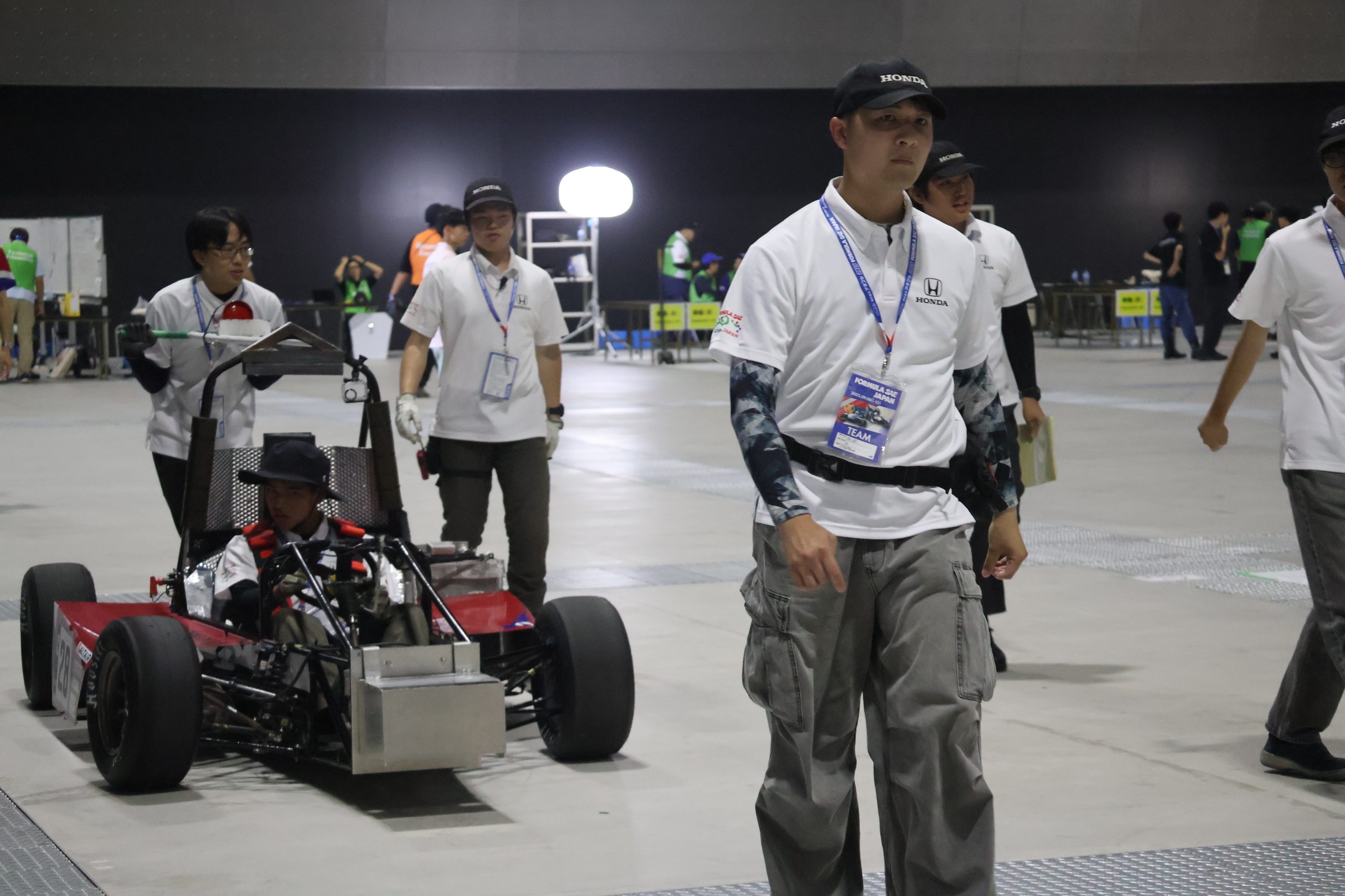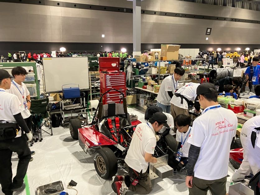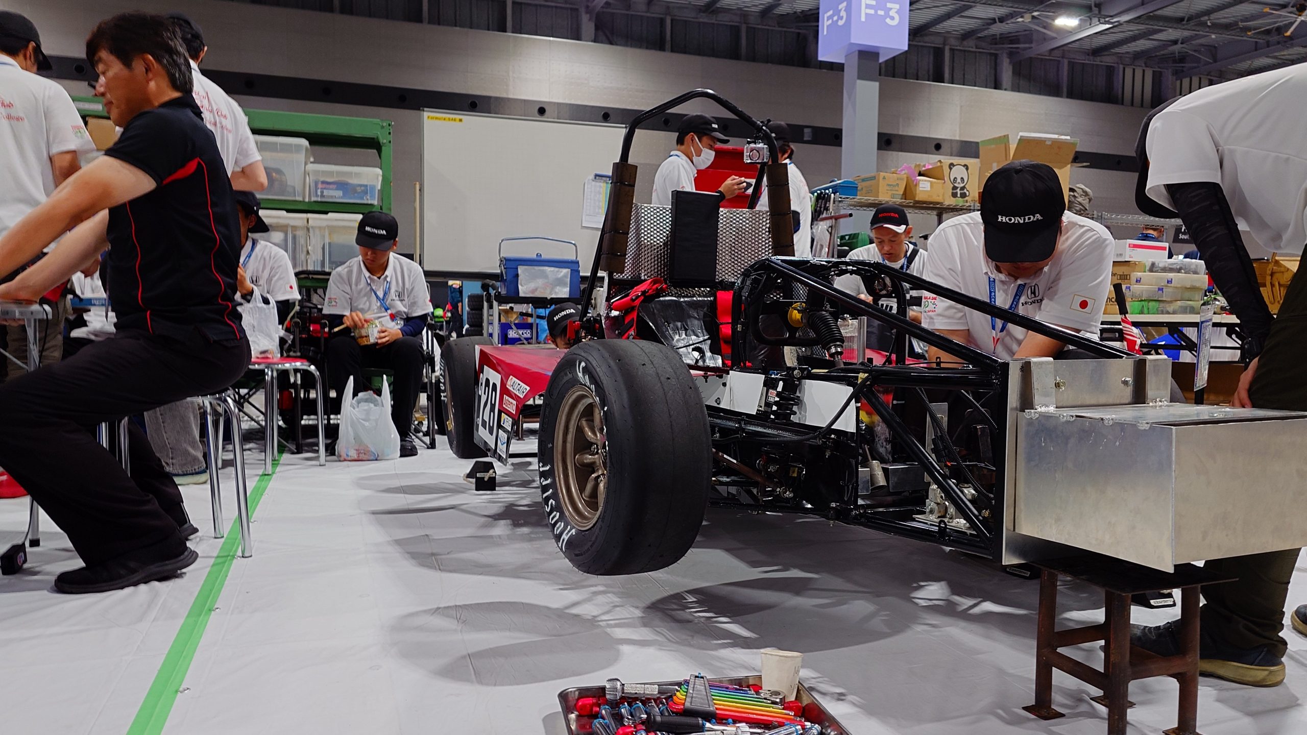 全日本学生フォーミュラ日本大会2025※1が愛知国際展示場にて、9月8日(月)~13日(土)で開催されております。ホンダ学園からは、関西校はもちろん、姉妹校の関東校も大会に参加しております。関西校は、フォーミュラSAE部に所属している学園生と教職員が9日(火)の早朝に出発し、会場入りしました。