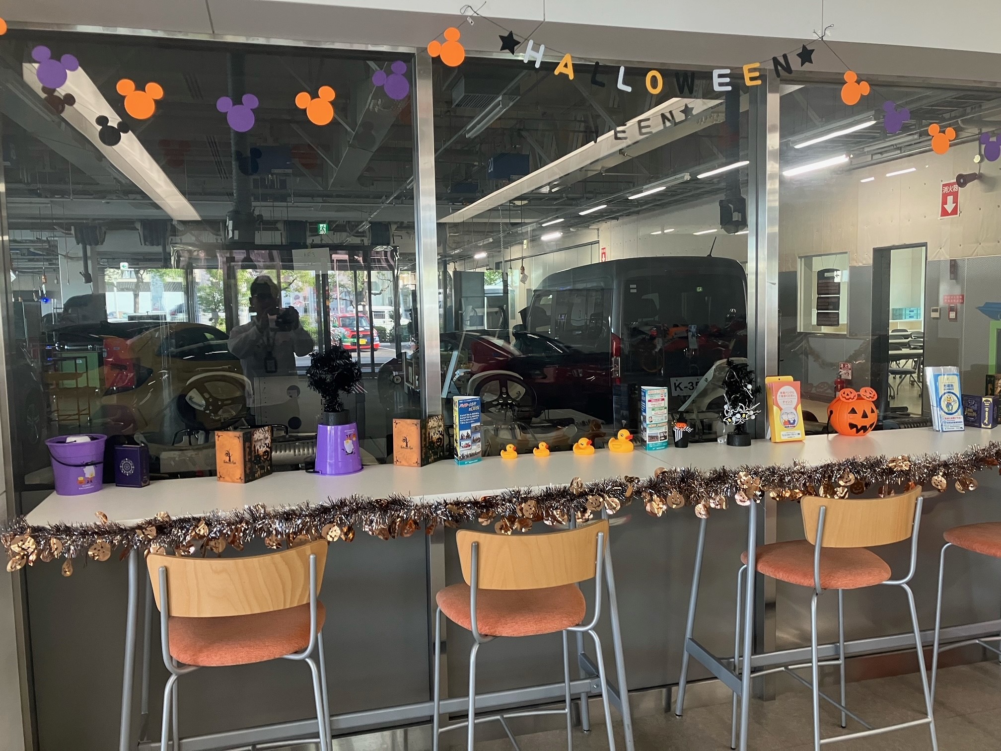 ガーデニング同好会の学園生と教職員で、受付付近や休憩場所のスペースをハロウィーン仕様の飾りつけをしてくれました。季節季節にあわせた装飾をしてくれるので、学園内でも、その季節の雰囲気を感じることができます。(^^♪
