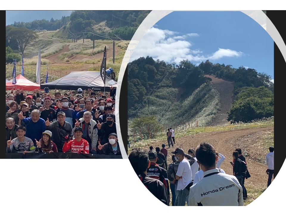 バイク同好会のオフロード部の学生5名が、10月18日(日)に滋賀県の朽木スキー場にて行われたHonda Dream主催の「朽木オフロードミーティング」に参加してきました。現地についてまず最初の感想は、スキー場が会場ということもあり、コースの斜度は想像を超えたものでした。