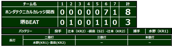 6回裏、このまま逃げ切りたいホンダ学園は辻本さんから初登板の鍋島さんへ継投。先頭バッターを打ち取るも、タイムリーを打たれると制球を乱し、満塁のピンチで再度、辻本さんへ交代し、最少失点で抑えることができました。7回にも辻本さん、豊島さんの連打で1点を追加し、8-3で勝利することができました。攻守で好プレーがあり、1年間の成長が見られる試合となりました。
