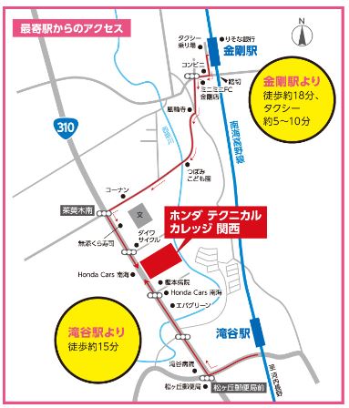 ※オープンキャンパスにご参加される方におかれましては、金剛駅からはタクシーをお使いいただいて構いません。本校到着時にタクシー代を本校でお支払いします。