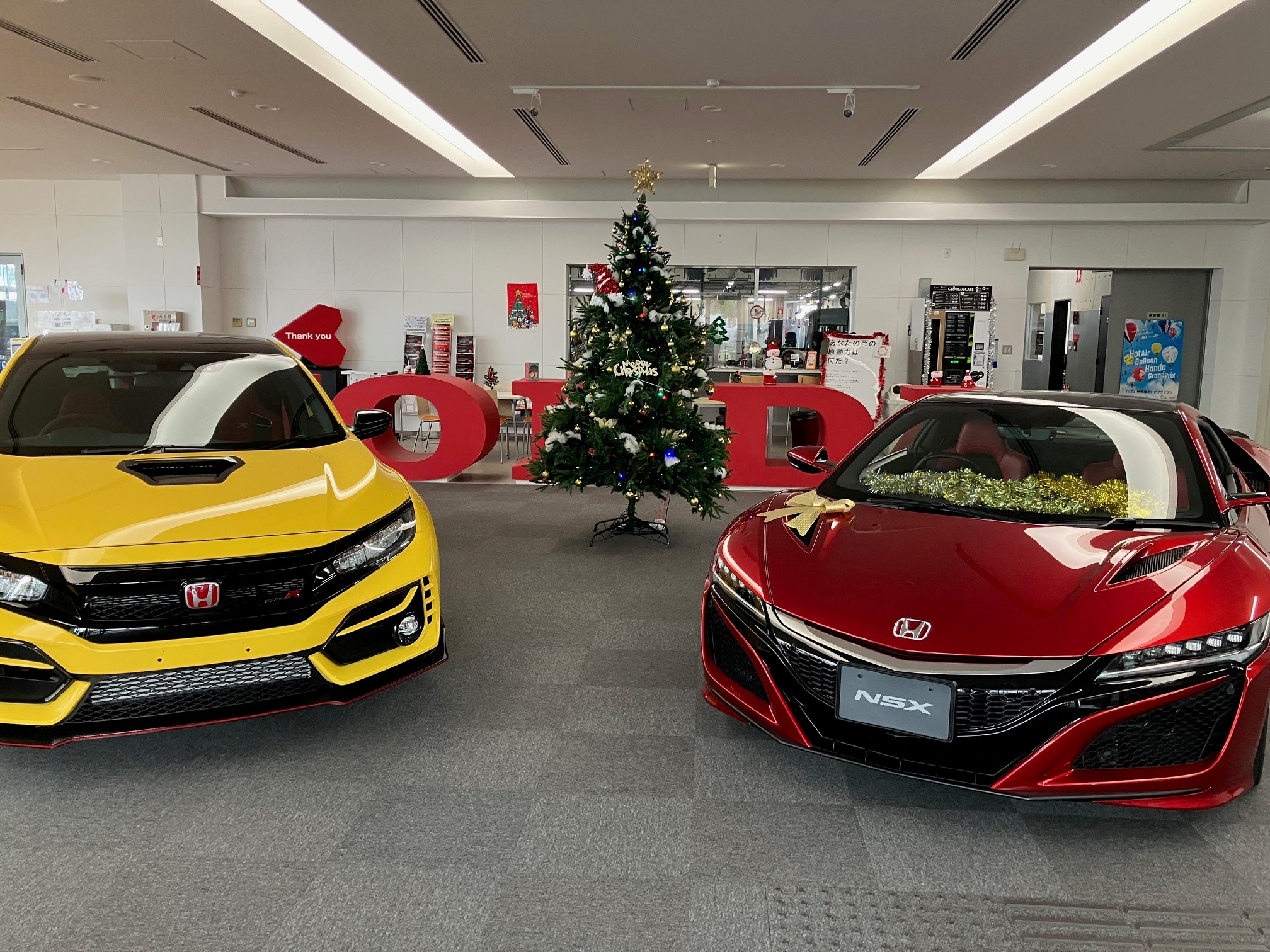 【飾り付け(ガーデニング同好会)】クリスマス仕様へ! 2023.12.11 ガーデニング同好会の学生が1F受付のショールームにクリスマスの飾り付けを実施してくれました。クリスマスの飾り付けは、すっかり風物詩として学園にも定着してます。雰囲気が出て、とてもいいですね。また、ショールームの展示車(NSX)の中にもしっかり飾り付けをしてくれてます。(#^^#) 季節やイベントを彩る飾り付け。これからも大切にしていきたいです。