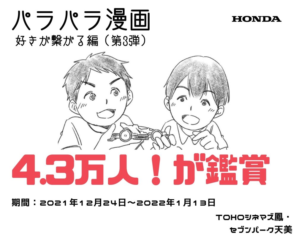 人気の漫画・アニメということもあり、2館3週間での映画鑑賞者数は、4.3万人にもなりました。多くの方に好きが繋がること、また、ホンダテクニカルカレッジ関西を知っていただきました。劇場に足を運べなかった方にも、本校のYouTube公式サイトにて動画の公開をしてます。ぜひ、ご覧下さい。