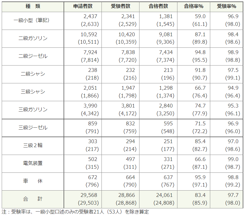 ■令和3年度第2回(第104回)自動車整備技能登録試験「学科試験」の試験結果