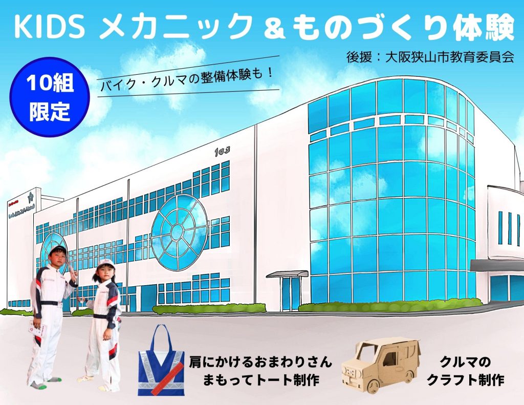4月25日(日)から開講する小学生を対象とした【KIDSメカニック&モノづくり体験】ですが、「大阪狭山市教育委員会」より後援がいただける体験イベントとなりました!