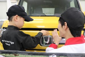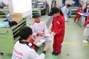 4月21日(日)に今年度に入って初めての『KIDSメカニック&ものづくり体験』を実施しました。ご参加いただいた小学生の皆様には、学園生が先生役となり、クイズ形式の交通安全教室・トートバッグ制作・メカニック体験・NSXの展示車で記念撮影と多くのプログラムを実施させて頂きました。今回もたくさんのお子様、保護者様の笑顔が見れました(#^^#)