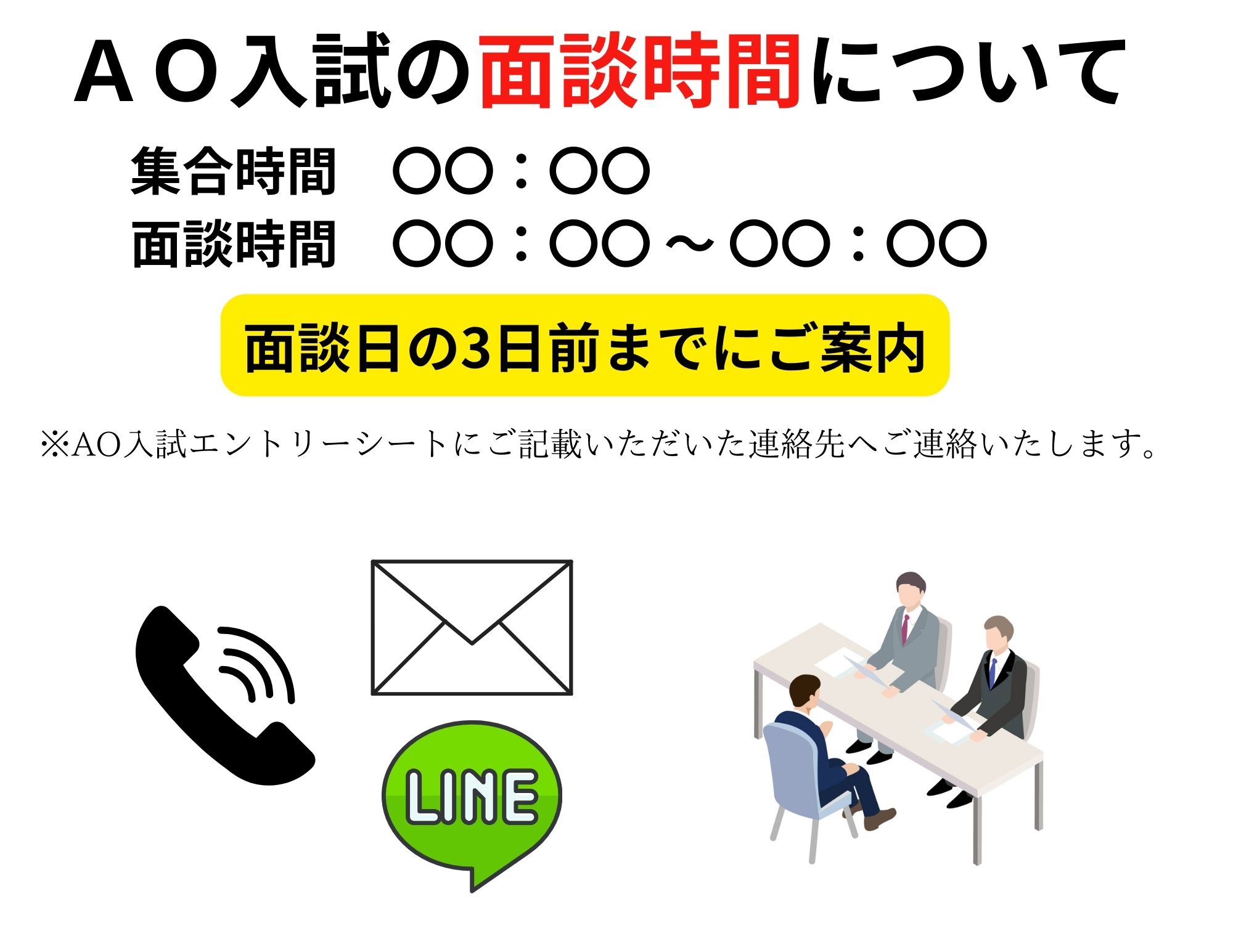 ■AO入試の面談時間のお知らせについて(面談日の3日前までにお知らせ)