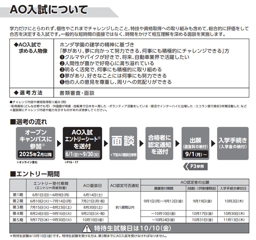 ご検討されている受験対象者の皆様は、2025年2月以降のオープンキャンパスに参加してから、期間内にエントリーをし、本校にて面談となります。まずは、2月以降のオープンキャンパスへご参加ください。