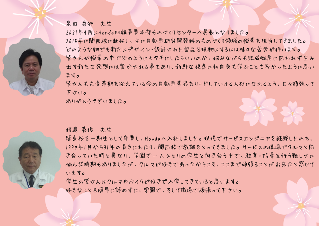 紙面に掲載できなかったご退任された先生方から学生の皆さんへのメッセージを頂いていますので、ご覧ください。