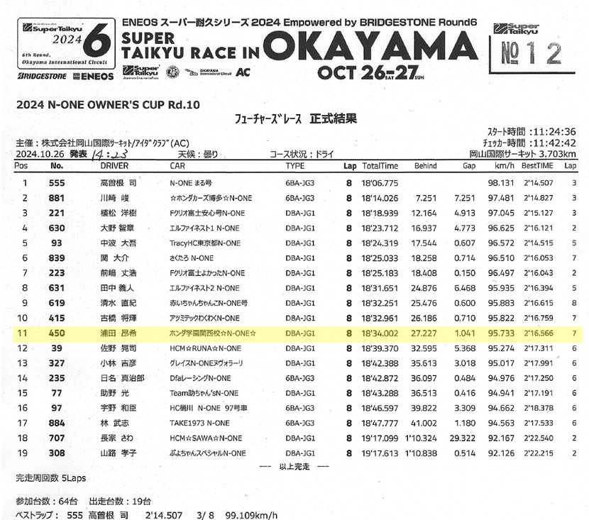 Round.10 岡山国際サーキット|レースレポート|N-ONE OWNER’S CUP