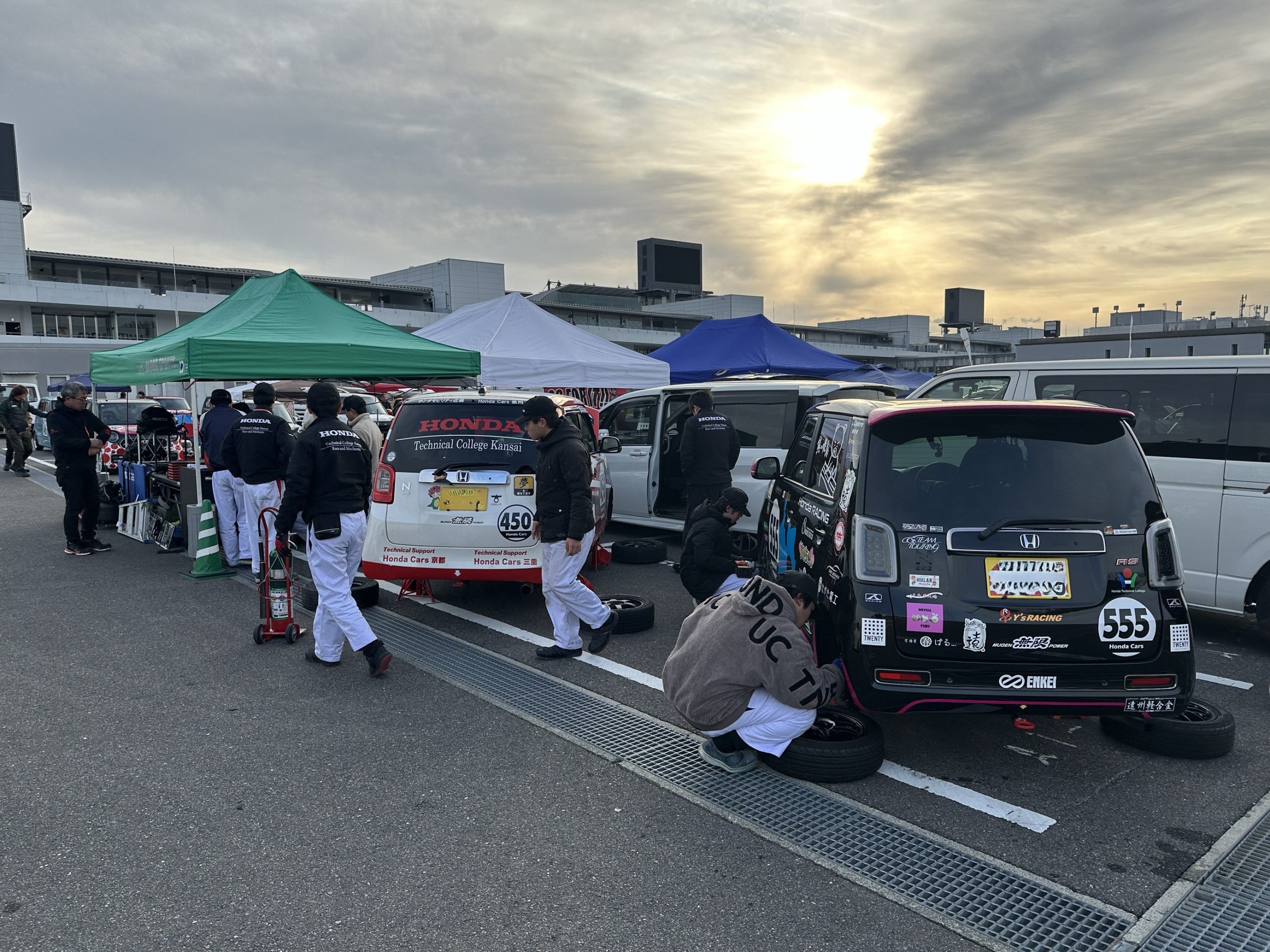 今回の遠征メンバーは、3月23日(日)に自動車整備士の国家資格試験を控えた学園生を除く1・3年生で構成し、レース車両は1台で臨みました。緊張しながらもレースの雰囲気にどこかワクワクした様子が見られました。