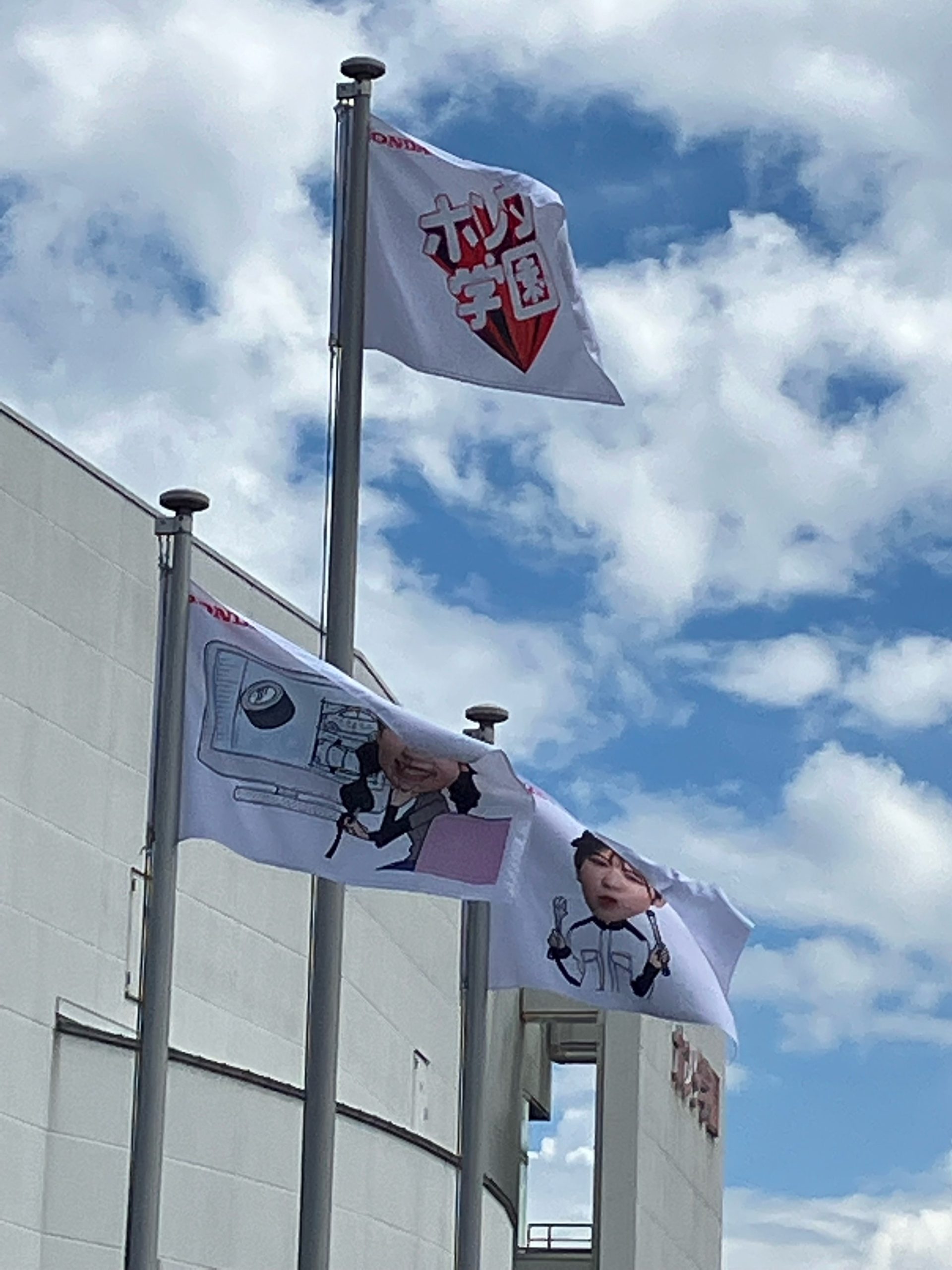 【New】正門前3連ポール❝フラッグ❞の入替え 2022.09.12 9月10日(土)に古くなっていた正門前の3連ポールのフラッグデザインを新調し、取り換えました。 デザインは、大阪府内のシティバスへのラッピングや本校の送迎バスにも使用している、アタラシイ、ホンダ学園のロゴとイラストを使用しました。ホンダテクニカルカレッジ関西の前をご通行の際には、是非、新調したアタラシイ、フラッグを見てみて下さい。 タノシイは、アタラシイ。