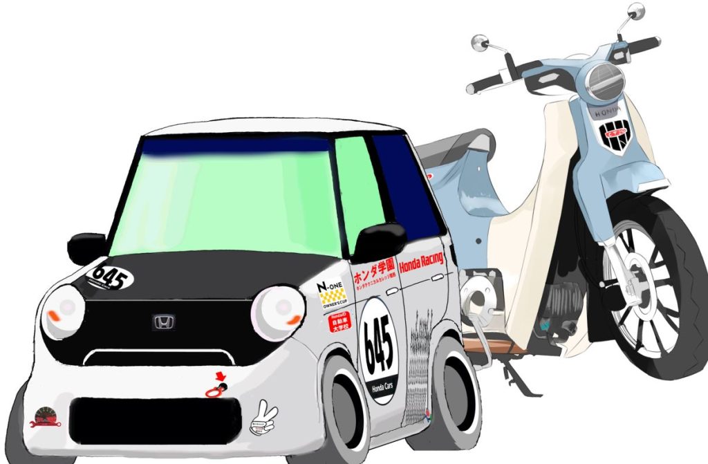 ホンダテクニカルカレッジ関西の正門付近に設置してある3連ポールに新たに教職員がデザインしたフラッグを設置しました。フラッグは①HONDA のロゴ ②同好会のレース車両とCub ③整備の授業風景の3つです。従来から道路フェンス付近に設置してある のぼりを含め、通行者・通行車両からもHondaの自動車大学校と気づかれやすくなるかと思います。付近をご通行された際は、新フラッグもご覧ください。