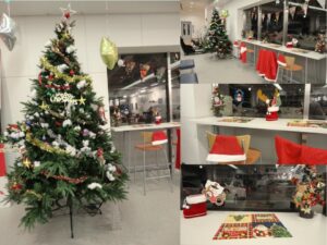クリスマス当日まで、1Fの展示スペースはクリスマス一色。ぜひ、ご来校の際はご鑑賞ください。