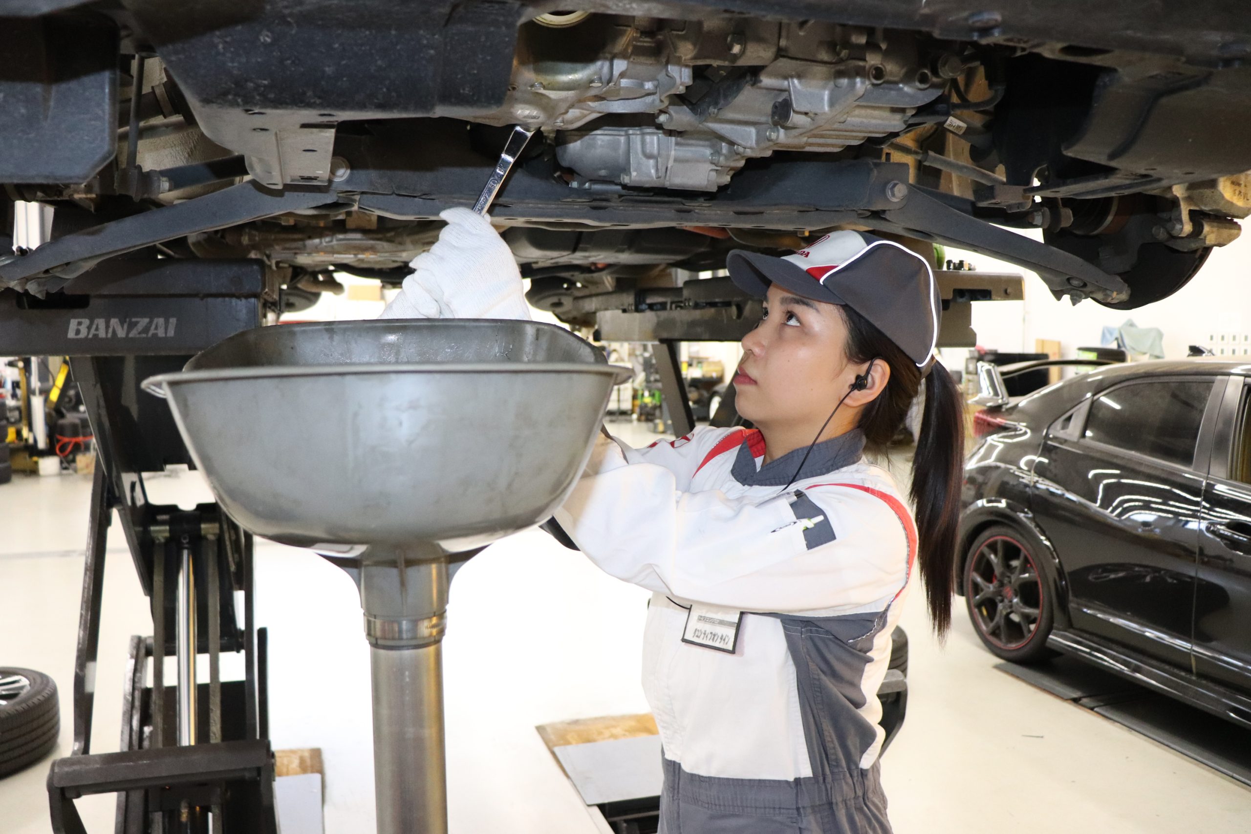 今の目標は、知識を更につけ、技術を磨き、多くのお客様から信頼される整備士になることです。ホンダ学園の先生は、一から丁寧に教えてくれ、また、実践で使える技術を教えてくれますよ!