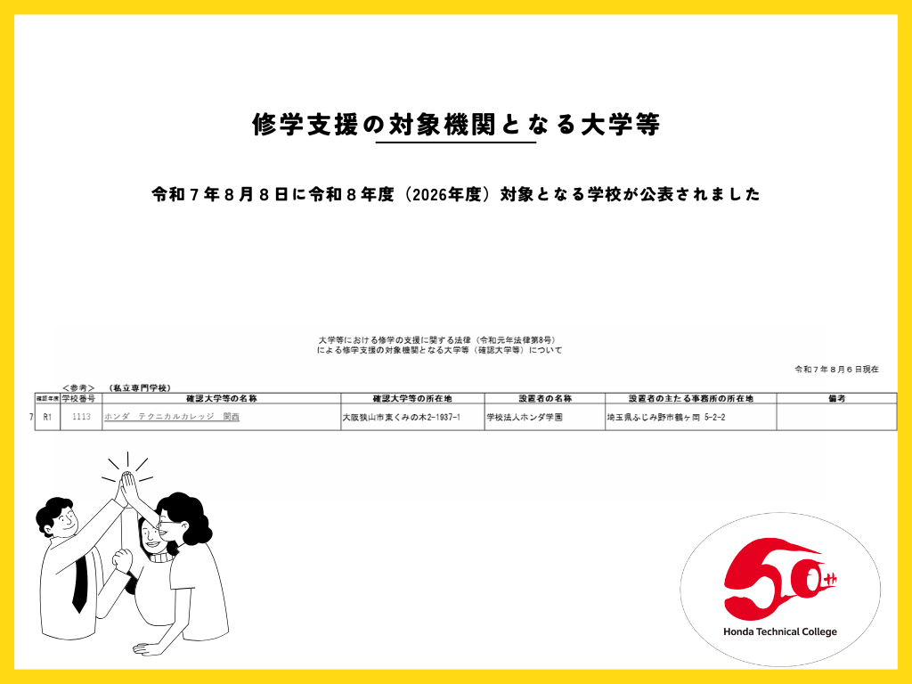 8月6日(水)に2026年度の修学支援新制度の対象校が公表されました。