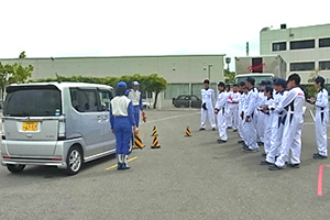 この講習は、1年生がより安全運転に高い意識を持って行動することと、将来、お客様に安全なカーライフを提案できるように実施しています。座学ではスライドを使っての「危険予知トレーニング」で、潜んでいる危険箇所の認知力を勉強し、校庭での実技では、車両の死角を認知することによる「防衛運転」の習得に取り組みました。1年生の皆さん、これからも交通マナーを意識して「安全運転」に取り組みましょう!