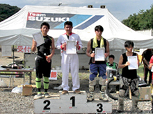 - 8月31日(日)、オフロード同好会は奈良県のウッズMSL下市で開催された「キャンパス・オフロード第2戦」に参加しました。午前中の2時間耐久レースでは、エキスパートクラスに出場した高橋君・川崎君チームが4位、小谷君が5位入賞を果たし、フレッシュマンクラスに出場したメンバーも無事完走しました。午後からのスプリントレースには昨年このシリーズで2回優勝している高橋君が3ラップ目にはトップに立ちそのままトップを譲ることなくゴールし、エキスパートクラスの優勝を決めました。