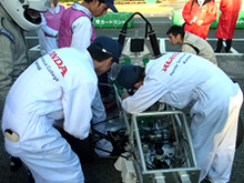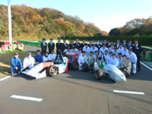 2年生と3年生がそれぞれ製作したマシンの「プレゼンテーション」と実際の「サーキット走行」を実施し、燃費等を競い合いました。