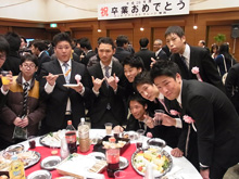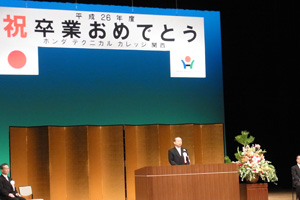 今年度の卒業生は204名(自動車整備科157名、一級自動車整備研究科31名、自動車研究開発科16名)が本校を卒業しました。卒業式ではクラス代表者への卒業証書授与をはじめ、ホンダ学園理事長賞、大阪府知事賞、ホンダ学園賛助会会長賞等の各種表彰から、ホンダ四輪サービスエンジニア、二輪サービスエンジニア等のホンダ認定資格の認定書の授与も行われました。卒業式後の祝賀パーティーでは、友人や先生と盛り上がり、楽しい時間を過ごしていました。卒業生の皆さん、ご卒業おめでとうございます。