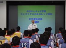 - 自動車整備科、一級自動車整備研究科の各1年生は11月に三重県鈴鹿市「鈴鹿サーキット交通教育センター」にて「安全運転講習」を開催しました。この講習は、自分自身の安全運転に関する技量や意識を高めると共に、ホンダ安全運転認定資格を取得する為に実施しています。