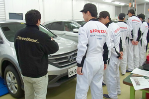 - 2月10日(水)、一級自動車整備研究科3年生は、Honda純正アクセサリーを開発生産しているホンダアクセス様にご協力のもと、株式会社スリーボンド様より講師をお招きしボディーコート研修を行いました。