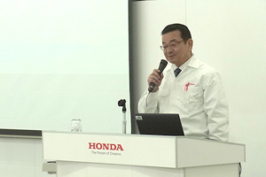 今年のテーマは、「水素社会に向けたHondaのあくなきチャレンジ!」で、FCVの開発秘話や今後の取り組みについて動画を交えてわかり易く話して頂きました。