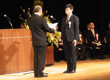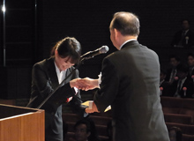 各クラス代表者への「卒業証書」授与に引き続き、各種表彰・認定証等の授与が行われました。また、ご出席いただいた来賓の方からは、卒業生への励ましの祝辞を頂戴しまし、最後は卒業生を代表して、自動車整備科 谷澤 亜香君が、感謝の言葉を述べて締めくくりました。