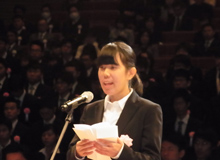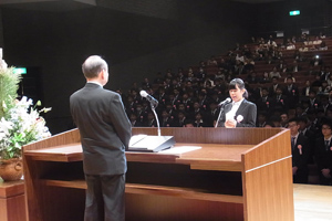 澤田校長が新入生に期待する式辞を述べ、来賓を代表して大阪狭山市長の古川様、本田技研工業株式会社専務執行役員でホンダ学園理事長の峯川様から祝辞を頂きました。新入生は緊張しながらも、これからの歩みに期待をふくらませながらお話しを聞いていました。最後に在校生を代表して、自動車整備科2年 泉 光希君から「歓迎の言葉」を伝え、新入生を代表して自動車整備科1年 柳元 鈴さんが「誓いの言葉」で応えました。