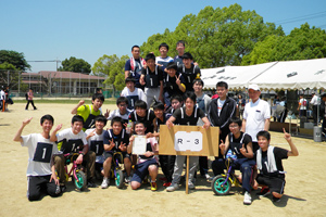 クラスが団結して取り組む競技を中心に行われました。ミニ自転車レース、大縄跳びや、ホンダ学園オリジナルの「4WD(4人4脚)」と、日頃のクラス内でのチームワークを発揮し大いに盛り上がった1日でした。