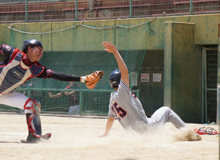 【野球同好会】決勝進出を決めました! 2016.07.03 7月3日(日)、野球同好会は、大阪狭山市軟式野球春季大会の準決勝に挑み、社会人の強豪「ダークホース」に6-0の完封で勝利を収め、7月24日(日)の決勝進出を決めました。