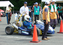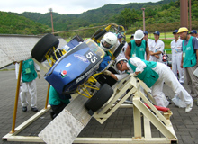 最初の車検では8項目もの指摘を受け、対応の為に会場で補強部材を調達したりしながら何とか無事に再車検で合格。その後、チルトテストやブレーキ、騒音の動的検査をクリアし、最終の動的競技(アクセラレーション、スキッドパッド、エンディランス)に備えましたが、車検対応に時間が掛かり過ぎた為、規程のスタート時間に間に合わず、残念ながらポイントを獲得する事が出来ませんでした。