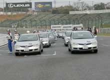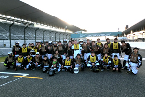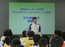 この講習は、自分自身の安全運転に関する技量や意識を高めると共に、ホンダの安全運転認定資格を取得し、将来は「お客様」に安全運転のアドバイスが出来るように実施しています。講習内容は、座学と鈴鹿サーキットの国際レーシングコースを使っての高速走行や、濡れた路面での急ブレーキ体験等々、実践的なカリキュラムになっています。
