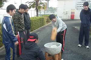 - 12月10日(土)、毎年恒例の「餅つき大会」を開催しました。学生間や教職員とのコミュニケーションの場となっております。