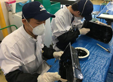 この講習は、学生フォーミュラのカウル等の樹脂部品を製作するための基礎の手順を学ぶ一環として実施しています。講習はFRPについての講座から始まり、ラジコン用ボディを型として用いた繊維の貼り込みや樹脂成形などのFRP製作の基本的手順を学びました。学生達は自分で繊維を貼り込み樹脂を塗布したのち、型と同様のボディ形状をした製品を型から取り出した際には一様に驚きつつも喜んでいました。