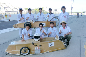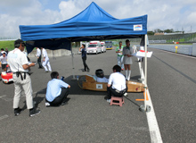 今年のチームは、昨年からの課題を中心に、上級生と新入生が一丸となってマシンの熟成を図り、2台体制で臨みました。当日は、35℃を超える猛暑の中、順調に車検に合格し1stアタックが始まりました。しかし、鈴鹿名物の難所ダンロップ坂で電気系トラブルが発生し完走出来ませんでした。その後、全員で1台のマシンを改修し、何とか2stアタックにチャレンジし、見事完走をしました。