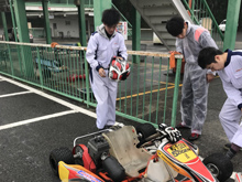 雨上がりの中カートの走行テストを繰り返し行い、キャブレーターに水が入らないようにペットボトルで吸入口を改良したりしエンジンにダメージを与えないようにしました。