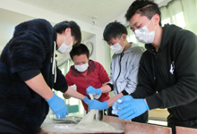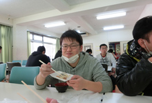 昔ながらの臼と杵を使い協力してお餅をつくことで同じ寮で暮らす仲間との親睦を深める機会となっています。手分けして丸めたお餅は、大きさも形のバラバラでしたが味は格別! きなこ餅やあんこ餅、お雑煮などで美味しくいただきました。学生はこれから整備士国家試験や就職試験を控えており、お餅で“粘り”と“力”をつけて頑張りましょう!