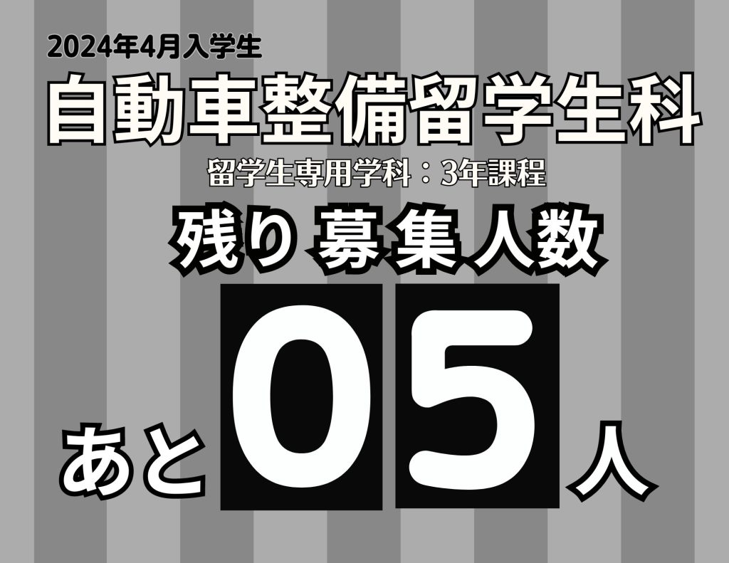 留学生専用の学科「自動車整備留学生科(3年課程)」の募集人数が、残り5名となりました。