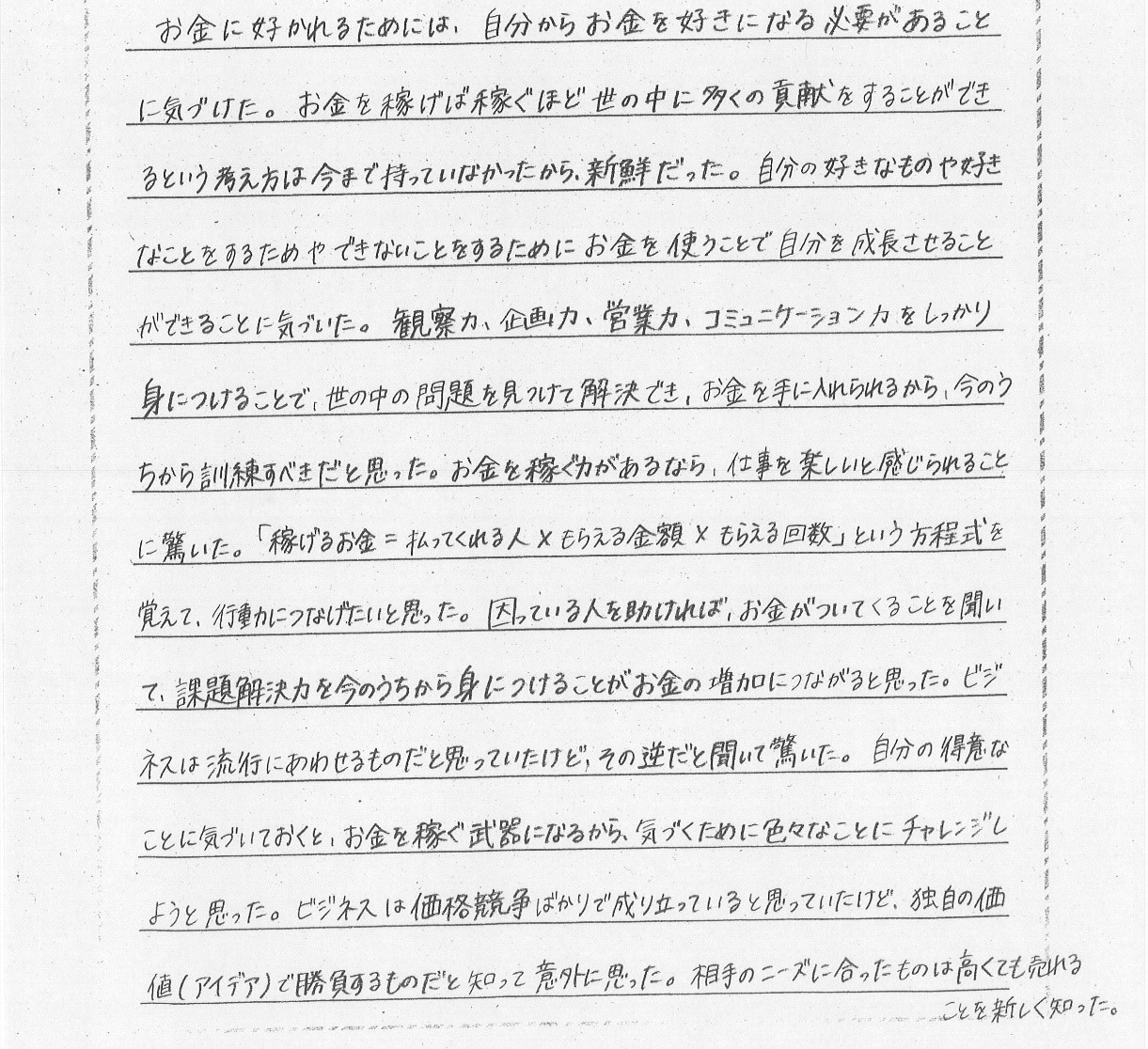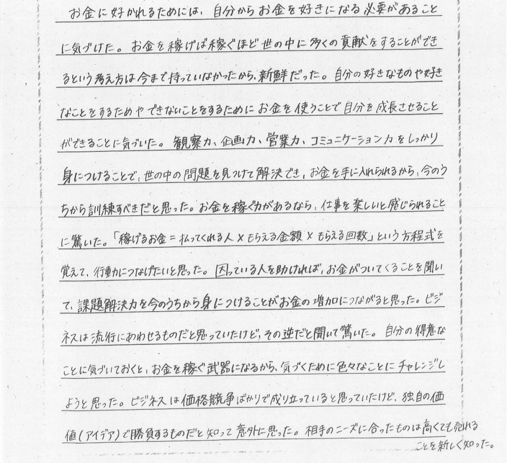参加した生徒の感想①