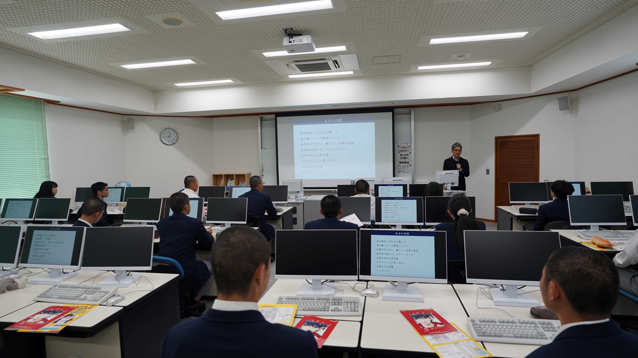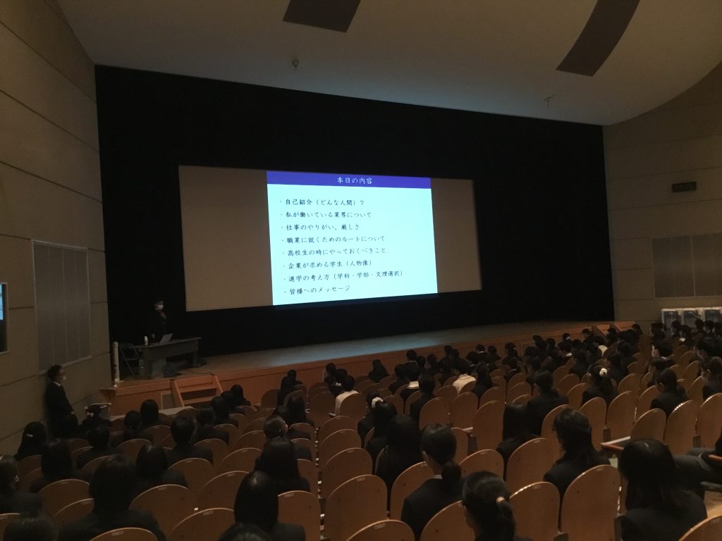 業界について、職種、やりがいに働く意味、本当にやりたいことの見つけ方等。講師が自ら高校生時代にしていたこと。未来からの逆算思考による進学先選びの提案!
