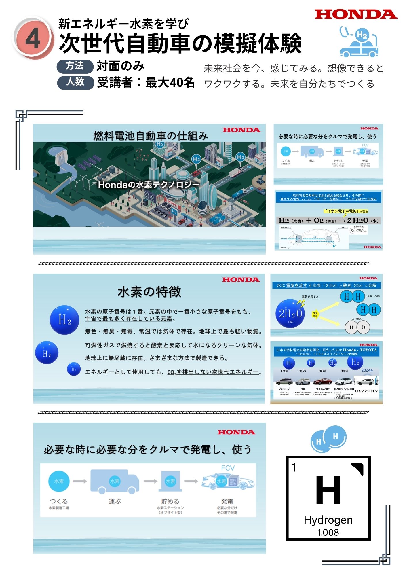 【出前授業④(体験授業)】次世代エネルギー“水素”を学び、次世代自動車の仕組みを知る:50分 参加人数:40名まで